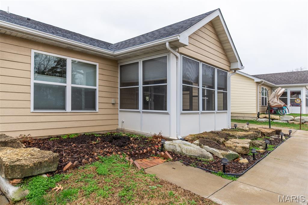 Beautifully maintained 2 bed, 2 full bath, "zero steps", condominium located in a desirable 55+ community in Union! Built in 2015, this home offers quality finishes and a thoughtfully designed layout for comfortable, low-maintenance living. The kitchen features beautiful custom cabinetry with pull-out drawers and two lazy Susans for excellent storage and easy accessibility, along with matching stainless steel appliances, a pantry and breakfast bar. The spacious primary suite includes a large walk-in closet and an additional linen closet for extra storage. The large laundry room adds everyday convenience, and yes, the washer and dryer are included! Throughout the home you’ll notice extra wide custom doors with brushed nickel lever handles, ceiling fans, and vaulted ceilings that enhance the open feel. Relax enjoying your morning coffee year-round in the enclosed patio rain or shine. Large windows fill the home with natural light and feature custom two-way blinds, even in the enclosed patio. Residents enjoy access to the community clubhouse and exercise room, along with a beautifully maintained neighborhood featuring a charming gazebo and pond—perfect for enjoying the peaceful surroundings. Just 2 miles from I44 on Hwy 50 this location is hard to beat; the charming small town feel of beautiful Union and an easy drive to St. Louis. This is one of the larger floorplans with the 2-car garage, and units like this rarely come on the market—act fast or it will be gone!