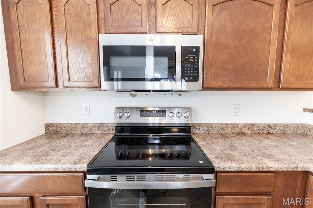 Move in Perfect. Beautiful Bexley Station condo in convenient Affton location. This condo is absolutely stunning. The appliances are brand new and gorgeous. The kitchen is spacious and has plenty of cabinets and counter space. Stainless Steel oven (with convection and air fryer), microwave, dishwasher and refrigerator (with ice maker). All appliances stay with the unit. New kitchen faucet and new garbage disposal. Open floor plan and painted with neutral colors. Separate dining area. Large living room with sliding door to covered deck. Primary Suite includes large luxury bath, double sinks, a walk in closet and a linen closet for extra storage. Large second bedroom. Second full bath in hallway. Hot water heater is brand new and the furnace is 2024. Other features: in unit laundry (washer and dryer stay) and covered deck with outside storage unit. The deck is perfect for morning coffee or evening cocktails because it is very private - backs to beautiful trees. The complex also has a fire sprinkler system in every unit. Passed St. Louis County Occupancy. Close to restaurants and entertainment. This will not be on the market long.